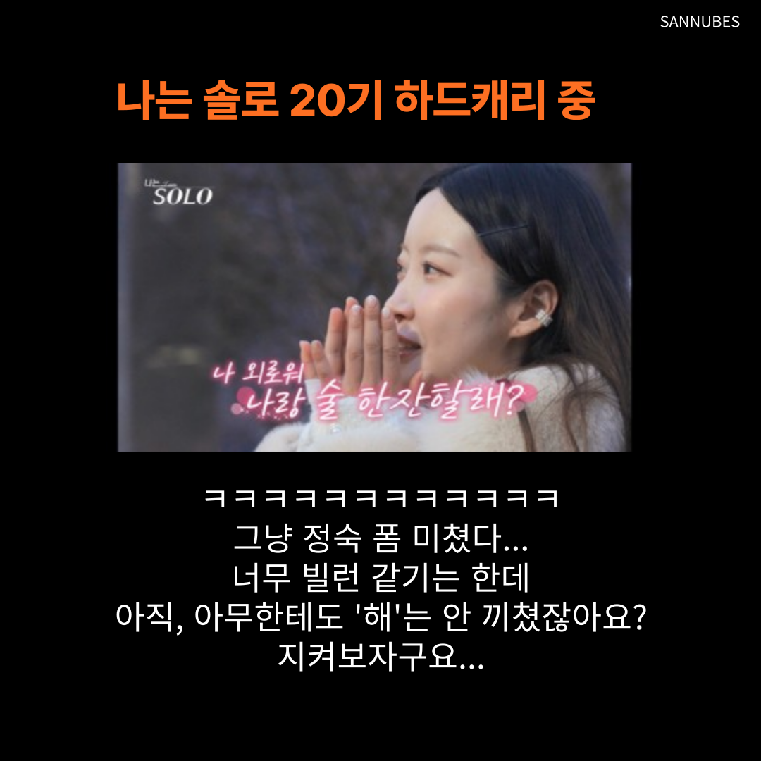 아무튼, 나는 솔로 20기는 정숙이 하드캐리하고 있다고 봐도 무방하다.