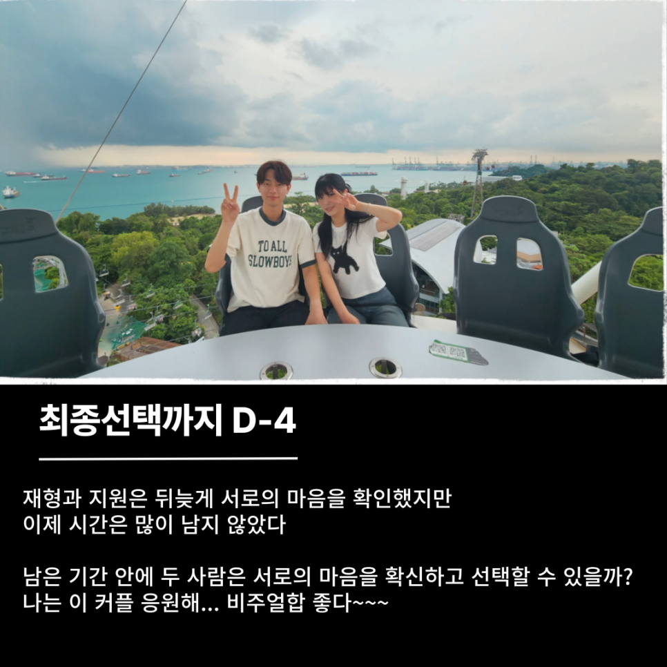 얼마만에 재형이 설레는 모습을 보는 걸까? 재형은 연애남매 10화 동안 주연과 몇 번 데이트를 하긴 했지만 딱히, 진심으로 관심을 보이는 모습은 없었다. 반면, 싱가포르에 와서 지원과 데이트가 성사되자 그의 태도는 사뭇 달랐다.