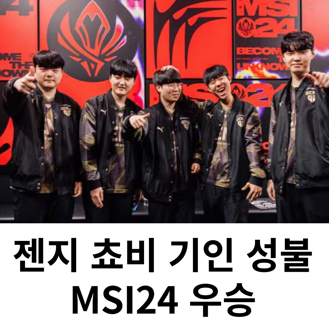 젠지가 2024 MSI(미드 시즌 인비테이셔널) 결승에서 우승을 차지했다. 젠지는 단 한 번도 다전제에서 패배하지 않으며 승리의 기쁨을 만끽할 수 있었다. 드디어 '무관의 제왕'이라는 꼬리표를 벗을 수 있었다.