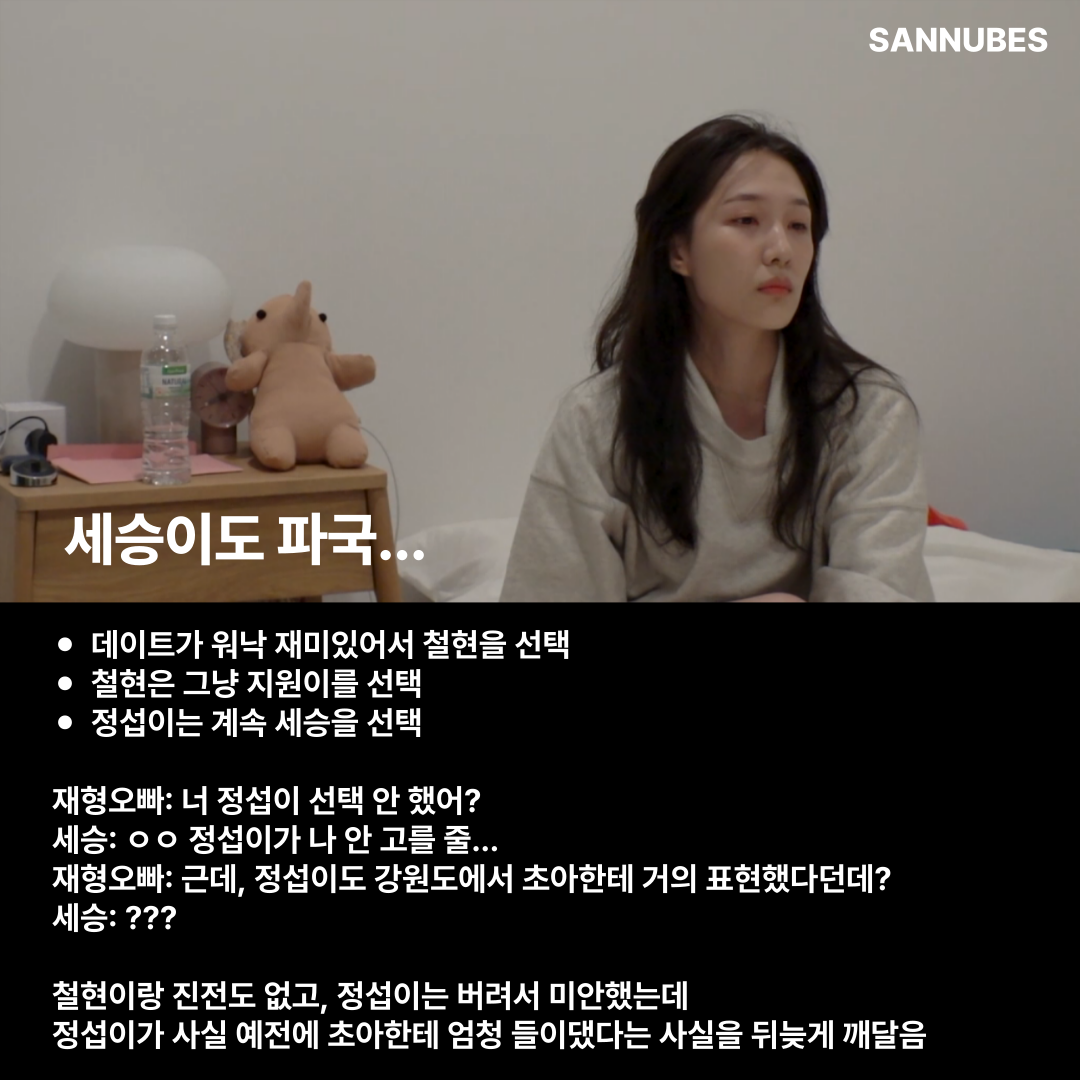 한 가지 확실한 것은, 현재 재형은 엄청나게 재미있을 것이다. 혼자 행복하고, 다른 사람들은 혼돈의 시간을 보내고 있으니 말이다. 이제 남은 시간 동안 이들의 선택이 어떻게 바뀔지, 또 어떤 드라마가 펼쳐질지 기대해 본다.