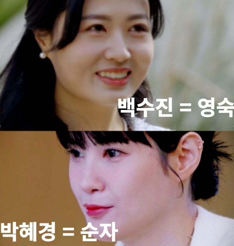 백수진 - 영숙: 영숙은 무난하면서도 뭔가 강한 내면을 가진 느낌이다. 수진을 보면 이전 돌싱특집의 영숙이 떠오르는데, 그만큼 비슷한 느낌이 많다.