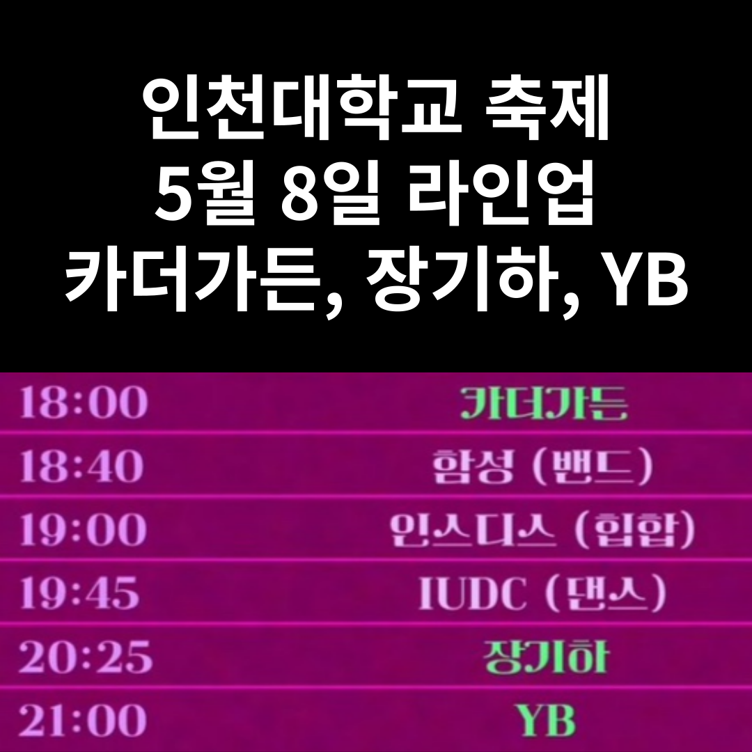 | <인천대학교 축제> 외부인 입장팁, 후기/ YB, 카더가든 / 5월 9일 박재범 청하! (0) | 2024.05.09 |